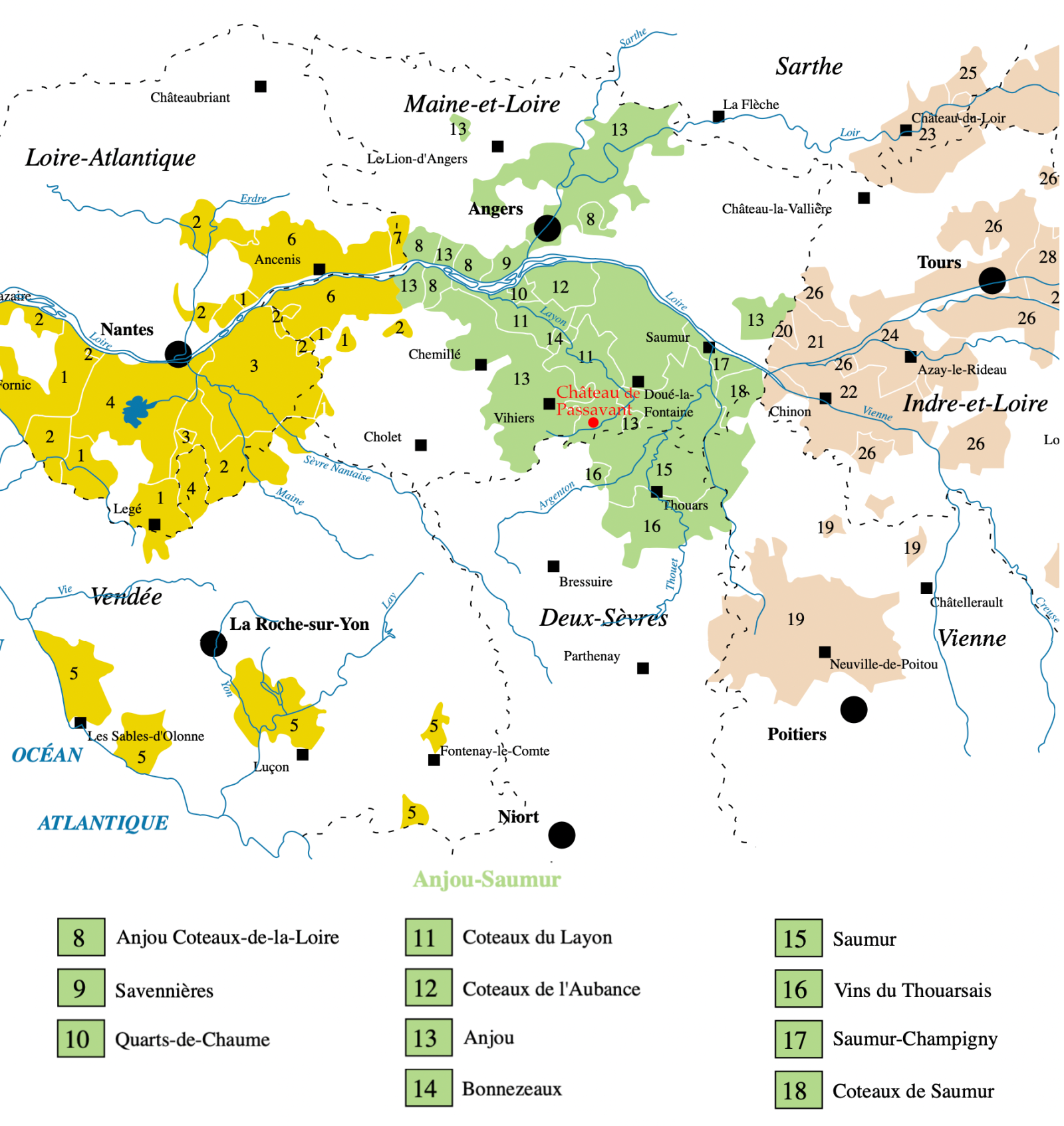 Château Passavant bietet eine ganze Reihe von Qualitäts-Weinen, sowohl rot als weiß und Rosé bzw. unvergleichbar Cabernet d´Anjou, zwei schöne Crémants weiß und rosé runden das Angebot ab,